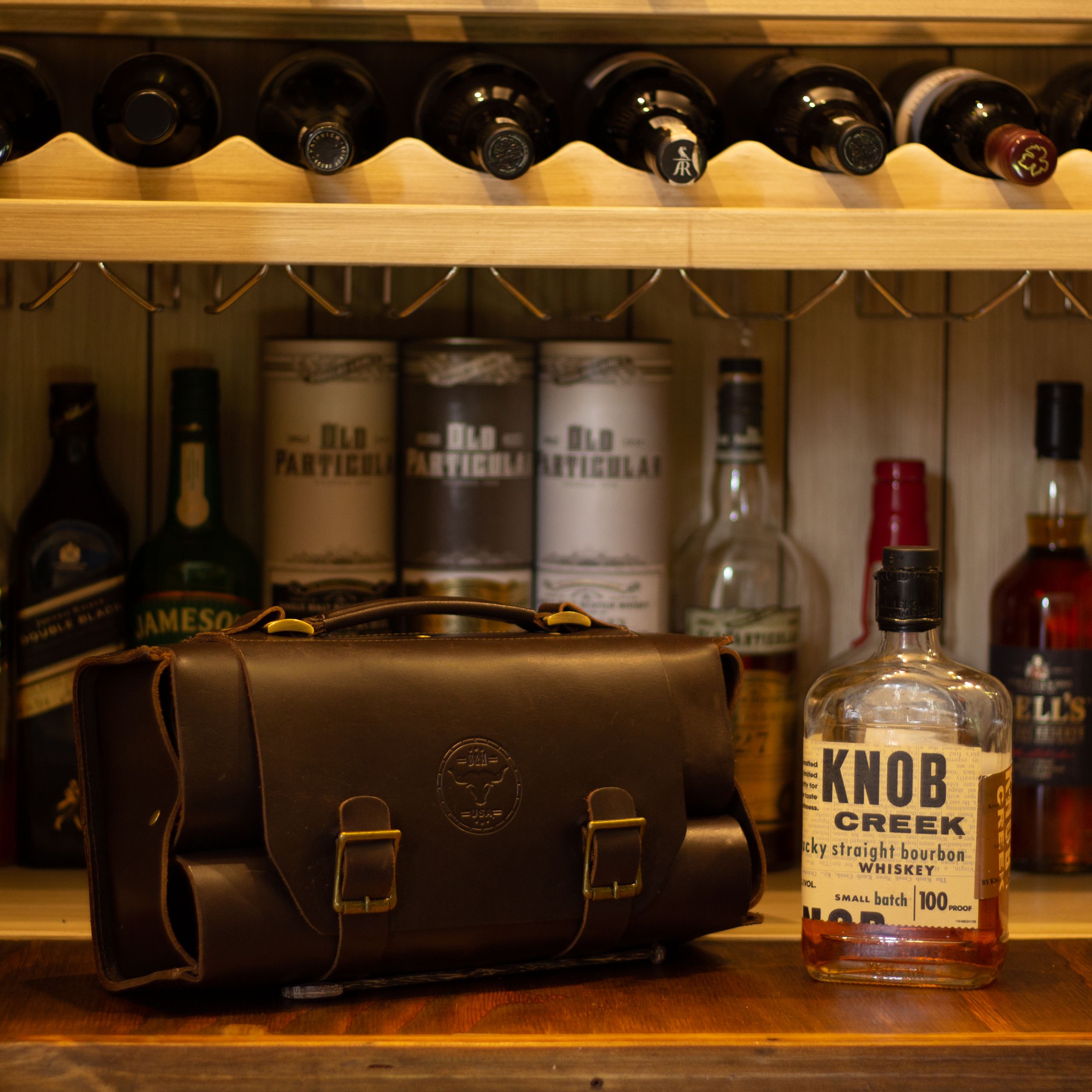 Perfect for any whiskey enthusiast, always on the hunt for that next favorite bottle of bourbon or Scotch. Never be without your favorite whiskey again. Our beautiful leather whiskey carrier is expertly crafted to carry your favorite bottle of whiskey and 4 whiskey glasses. The full-grain cowhide leather will age beautifully the more you use it, building character unique to your usage.