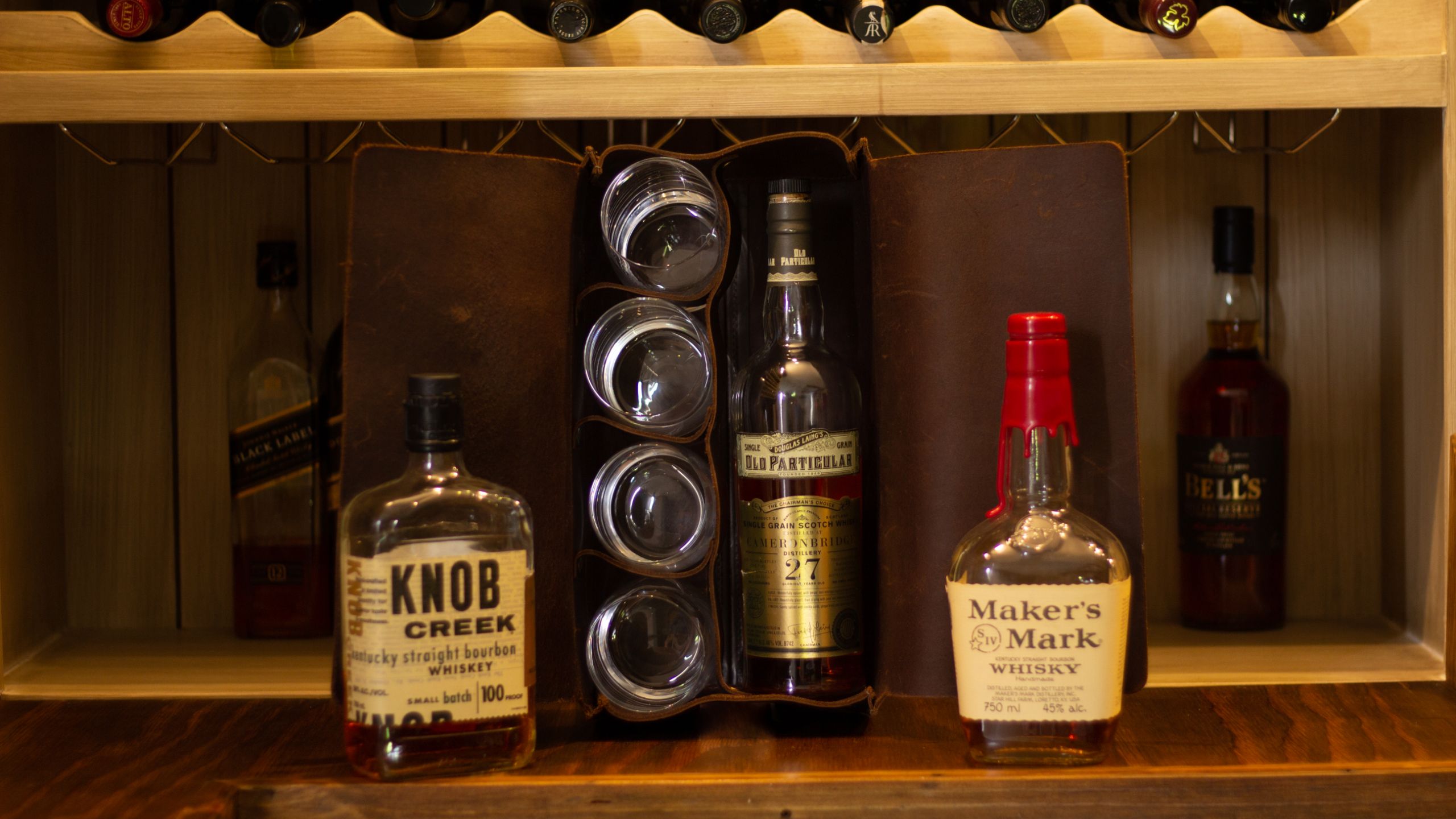 Not only does the carrier keep your favorite bottle of whiskey safe, it also has space for 4 tumblers in order to share that special bottle with friends or family.